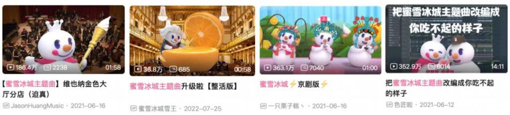 在一系列推广营销后,雪王的形象越发立体,由其衍生的话题与视频,创下微博 10 亿阅读量,B 站超千万播放的战绩。