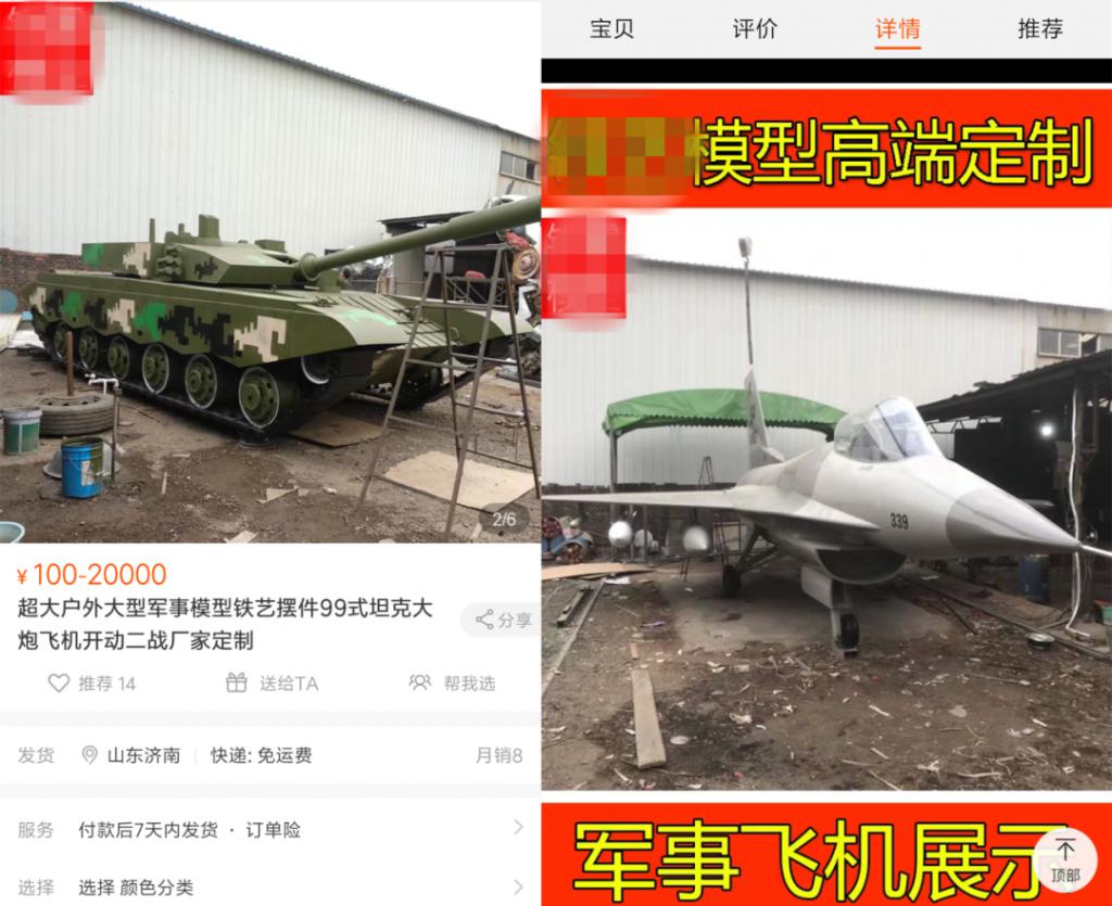 军武菌在某宝上搜了一下,发现确实有不少厂家在生产销售这种模型,来图定制,手艺不是一般的强。只要一万八,99 坦克开回家,土豪军迷可以下单,放在自家院子里,你绝对会是这条街最靓的崽。