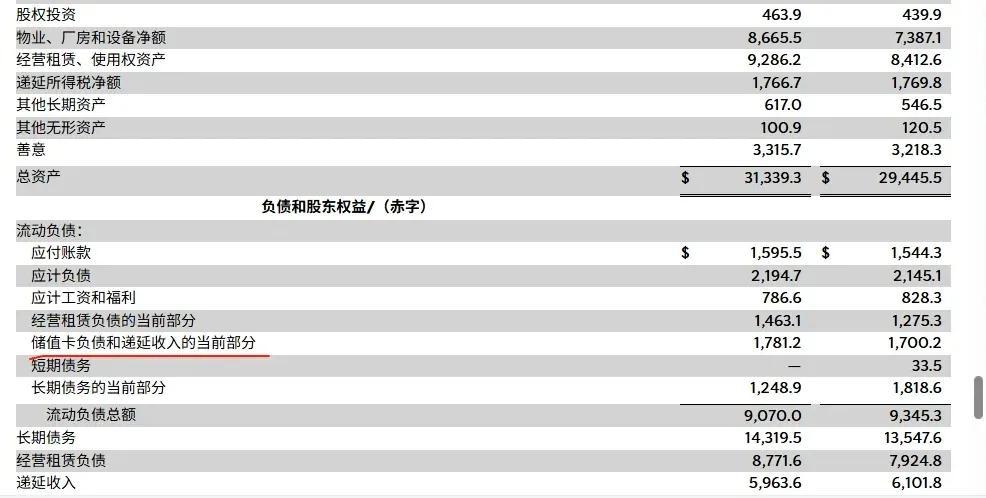 图注:这 17 亿美元,是会员充值,但还没消费的钱。星巴克可以将其用来购买国债,赚取每年 7 千万美元左右的利润。