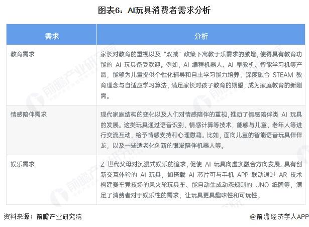 在教育领域,因家长重视教育及 " 双减 " 政策影响,具备教育功能的 AI 玩具如编程机器人、早教机等成家庭教育新刚需,融合先进教育理念与算法满足教育期望 ; 情感陪伴方面,家庭结构变化促使能交流互动、给予情感支持的 AI 玩具发展,如智能语音玩具及银发陪伴机器人 ; 娱乐方面,Z 世代父母追求沉浸式娱乐,推动 AI 玩具向虚实融合方向发展。