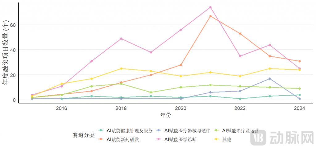 图:2015.06-2025.06中国AI医疗行业各赛道融资数量走势 来源:根据医药魔方数据整理