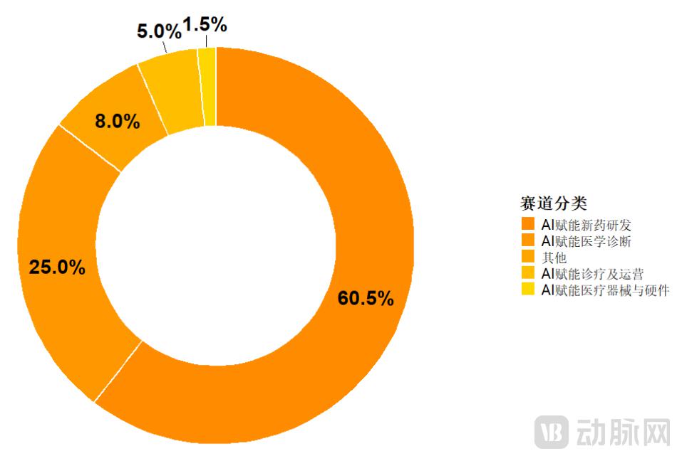 从投资方向来看,TOP10机构的投资重心高度集中。统计显示,60.5%的投资事件聚焦在AI赋能新药研发,25%投向AI医学诊断,两者合计占比超过85%。其余如其他、AI诊疗及运营、AI医疗器械与硬件等赛道,仅获得有限投入。这一格局反映出头部机构重点关注商业模式清晰、落地性强的医学诊断,以及具备高技术壁垒与成长潜力的新药研发赛道,显示AI技术在推动医药产业升级过程中的核心动力地位。