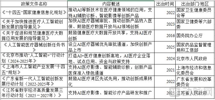 表:10年间推动国内AI医疗行业的国家及地域的代表性政策 来源:根据国务院网站、地方政府政务网站公开信息整理