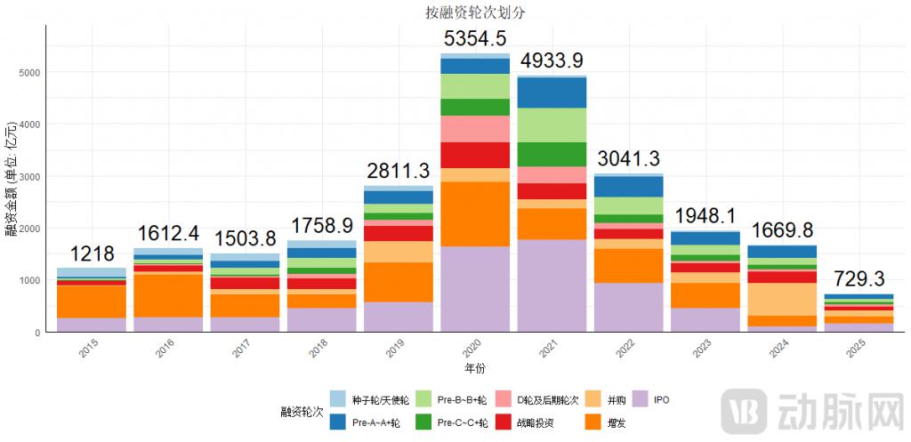 图:2015.06-2025.06国内AI医疗行业融资金额及各轮次融资金额 来源:根据医药魔方,wind数据库数据整理
