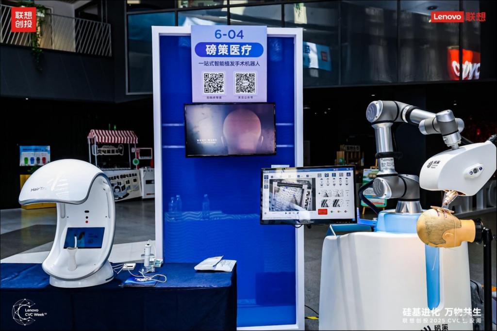 在创投周现场的机器人及具身智能展区,这一未来图景变得触手可及。联想创投在具身智能领域的布局,已形成一支覆盖全产业链的 " 人形机器人军团 ",星动纪元、跨维智能等企业带来形态各异、能力卓越的人形机器人,逐际动力展示了多形态双足机器人,戴盟则展示了关键的视触觉传感器与遥操作设备。磅策带来的精准植发手术机器人、长木谷展示的骨科智能手术机器人、爱博合创研发的血管介入手术机器人、普利方舟的支气管镜机器人,正在重新定义精准医疗的边界。以及本末科技的轮足机器人、云迹的工厂机器人、飞马机器人的工业级无人机、艾利特的复合机器人,共同勾勒出一幅未来智能体在复杂环境中自主工作的生动场景。