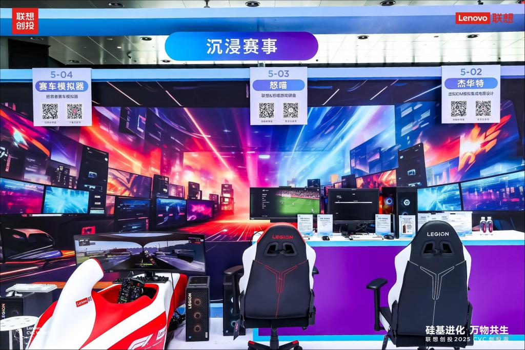 智能体验不仅存在于工厂与医院,也正在重塑我们的工作与生活。在场景体验区,观众能沉浸式感受这种变革。清听声学打造沉浸式智慧视听空间,耐德佳展示其创新的远像光屏与离焦读写台,莫界带来前沿的 AI+AR 眼镜体验,共同定义了未来生活及办公的视听新标准。而在沉浸赛事区,本末科技直驱电机加持的联想拯救者赛车模拟器带来风驰电掣的竞速快感,怒喵的电竞键盘提供极致的操作响应,杰华特的电源管理技术支撑着流畅的游戏体验,联想的拯救者系列电竞椅与公路自行车等产品则构建了完整的硬核玩家生态。人机交互的边界在这里被不断拓展与融合。