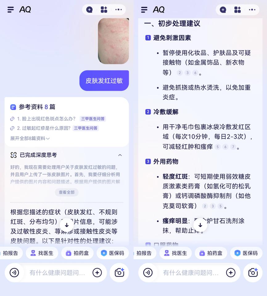 面对不少有健康焦虑的邻里,夫妻二人也会推荐对方用 AQ 应用," 上面提供健康科普、报告解读、就诊咨询、健康档案管理等超百服务,比居民们在家里自己查资料、干着急靠谱。"