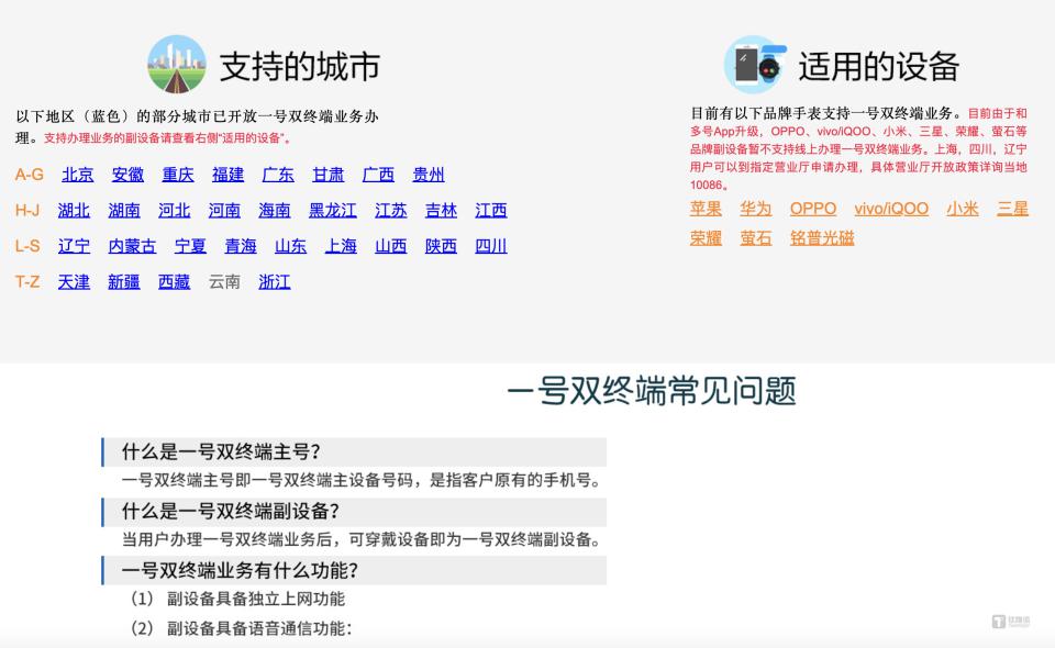 其中,中国移动一号双终端是两个终端共享同一个号码的业务,该业务是将用户的手机号码与可穿戴设备进行鄉定(鄉定后手机即为 " 主设备 " 穿戴设备即为 " 副设备 "),无论用户作为主叫或是被叫,主副设备均对外显示同一号码。用户可以在线上验证开通办理,但目前仅支持部分品牌的设备和城市,OPPO 官方更是特地做了开通的教程视频。