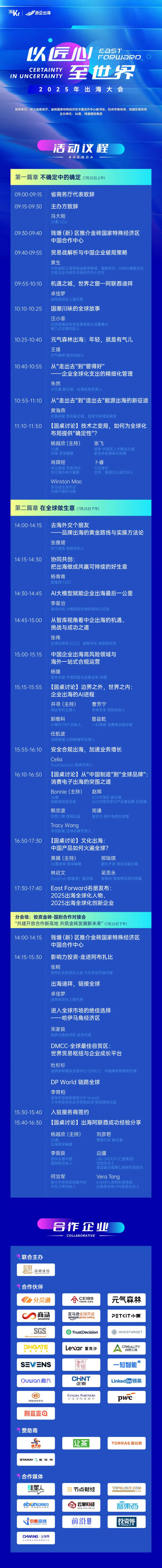 为了从全球化发掘那些以卓越实践引领行业方向的领航者,本次大会还将聚焦 " 领航人物 "" 创新人物 " 和 " 创新企业 " 三大核心维度,重磅发布 East Forward 2025 出海全球化创新名册,为中国品牌的全球化征程树立可借鉴、可参照的行业典范。