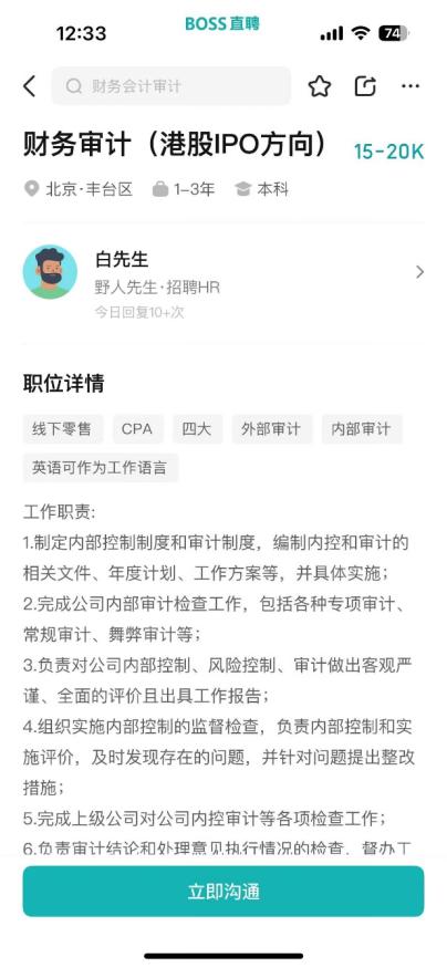 8 月 2 日,蓝鲸新闻记者从 BOSS 直聘平台获悉,野人先生正在招聘财务审计(港股 IPO 方向),工作职责包括,制定内部控制制度和审计制度,编制内控和审计的相关文件、年度计划、工作方案等,并具体实施等等。蓝鲸新闻记者多次致电野人先生官网电话求证招聘及上市相关事宜,截至发稿前未获得对方回复。