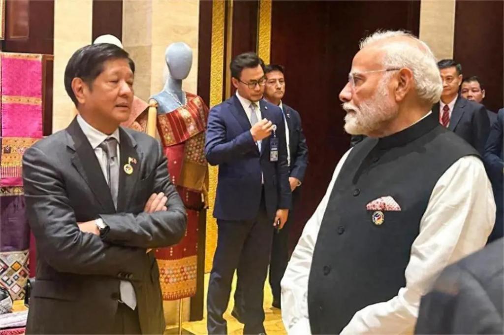 马科斯(左)访问印度,会见印度总理莫迪(右)