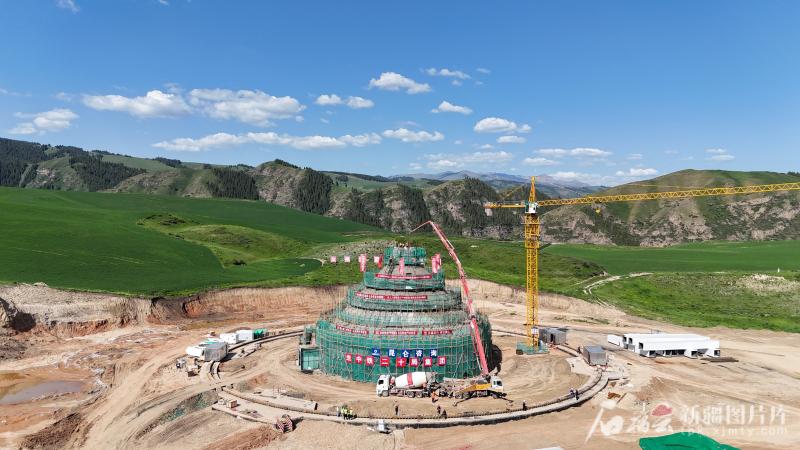 8 月 1 日,在奇台县半截沟镇石河子村,国家重大科研基础设施、110 米口径的奇台射电望远镜(QTT)建设正酣。这座重达 6000 吨的钢铁巨构,已完成直径 76 米的环形轨道高精度装调,滚轮及中心体结构单元正在拼装,座架结构安装加速推进。