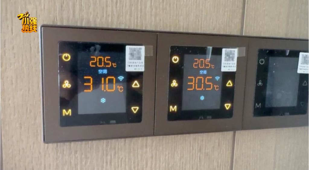 现场,陈女士把家里所有空调都设置到20.5 度,关上门窗后,记者和陈女士在家里等待了半个多小时,空调面板显示,室内温度为 31 度。" 这个房子夏天像桑拿房一样,非常非常的热。我的诉求就是不管开发商用什么方法,要让我空调出冷风的同时,让房间变得凉快,像正常的家里室内一样就可以了。"
