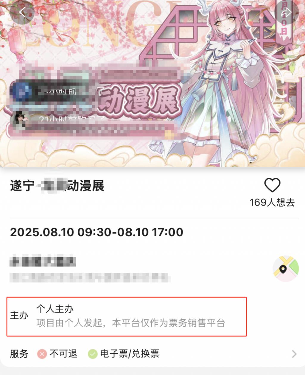 据公开信息,该漫展活动是在遂宁市船山区某酒店二楼举办,活动时间为 8 月 10 日上午 9 点 30 分到下午 5 点,主办方公布票价为 50 元到 80 元不等。