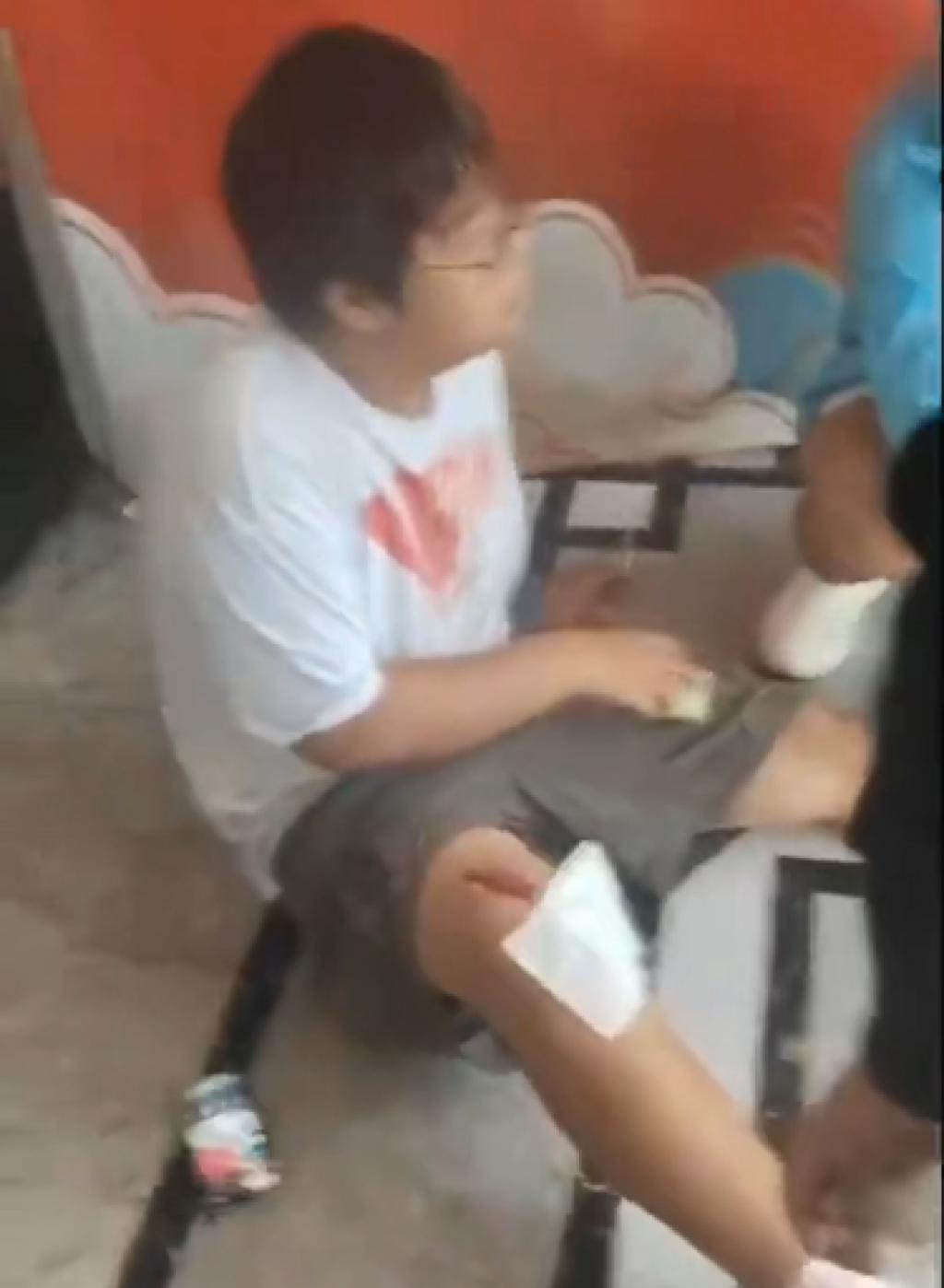 根据视频,现场有多名身穿二次元服饰的人员,其中一人突然取下一名男子的假发扔到地上,该男子持刀回身砍伤对方,受伤人员腿部有伤口。