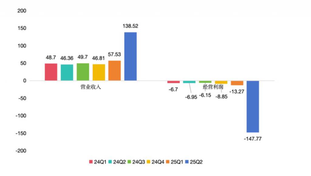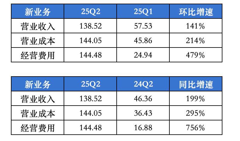 同比来看,25Q2 京东新业务营收从 46.36 亿元增长近 200% 至 138.52 亿元,经营亏损从 6.95 亿元扩大至 147.77 亿元。环比来看,25Q2 京东新业务营收环比增长约 141%。