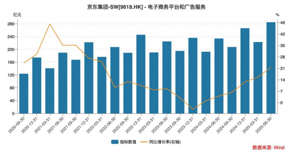 此外,从反映 3P 业务的平台及广告服务收入看,该业务在 25Q2 的营收为 285.07 亿元,同比增长 21.69%,营收金额同样达到历史新高,这意味着京东 3P 业务已经开始有实质性的业绩贡献。