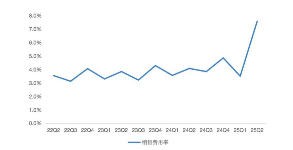 不难发现,京东整体的营销开支增速明显与营收增速偏移,因此,营销开支的大幅增长(同比增长金额超 150 亿),是京东外卖经营费用同比激增的主要原因,而大幅增长的营销开支,也主要是京东外卖对消费者的补贴。从费率的角度看,京东 25Q2 营销开支在总收入中的占比 7.6%,较去年同期提升 3.5 个百分点。
