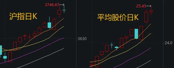 尽管过程跌宕起伏,但从日 K 来看,不论沪指还是全 A 平均股价,整体都是高位缩量十字星的形态。对此,该如何理解?