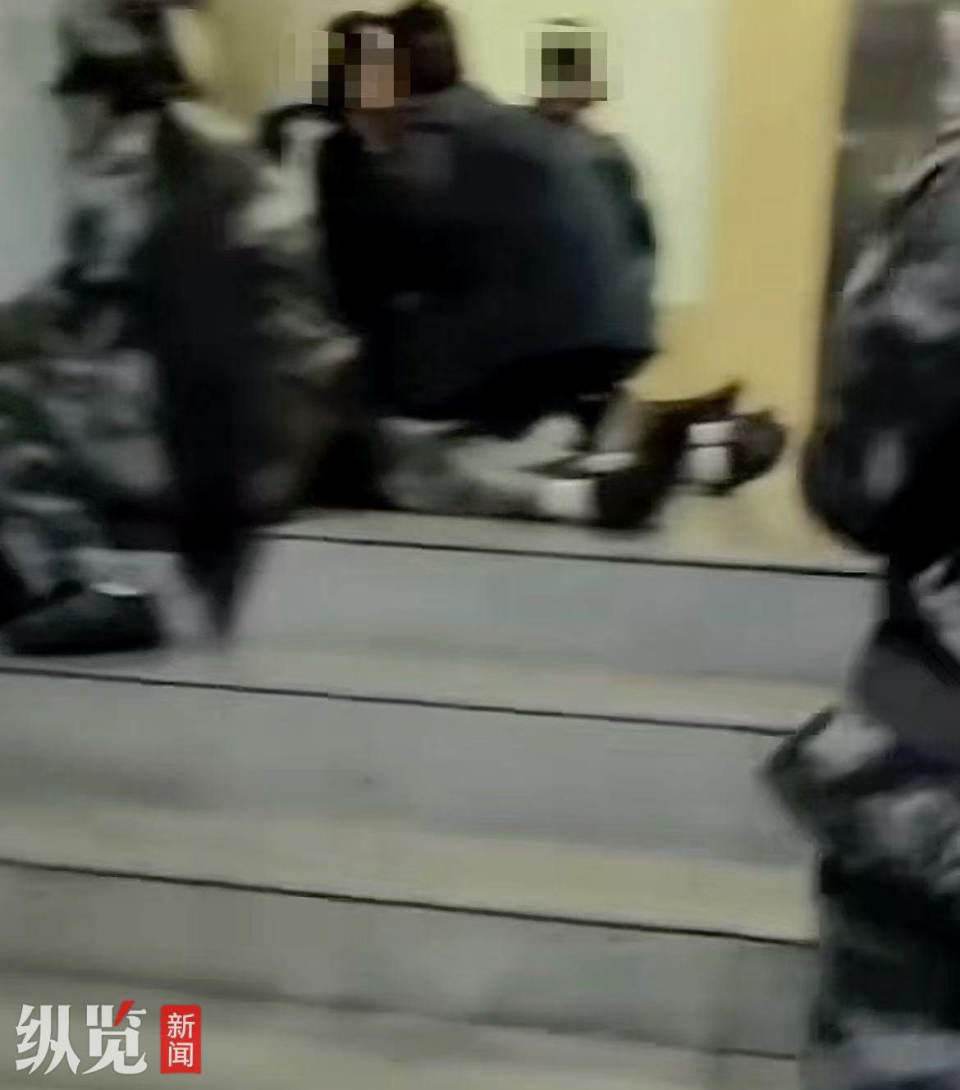 视频显示有身穿军训服的学生躺在地上。(来源 / 网络截图)