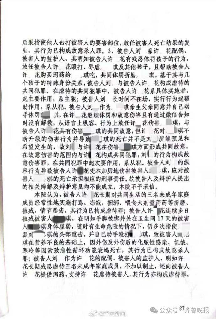 2023 年 12 月,福建省莆田市华亭镇兴沙村,12 岁的女童琪琪被继母许某花关在厕所长达 17 天,期间遭受持续虐待,最终不幸离世。该案于今年 4 月底一审宣判,继母许某花因犯故意杀人罪和虐待罪,被判处死刑,剥夺政治权利终身;生父刘某因犯故意伤害罪和虐待罪,被判处有期徒刑五年六个月。