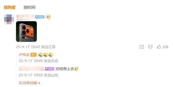 还有把 iPhone 17 Pro 给 P 上去的,连卢总都无奈了,忍不住回复了 " 允悲 " 的表情。