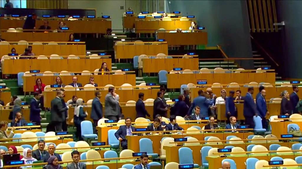 但空荡荡的联合国大厅,越来越多国家承认巴勒斯坦国,凸显了以色列空前的孤立。