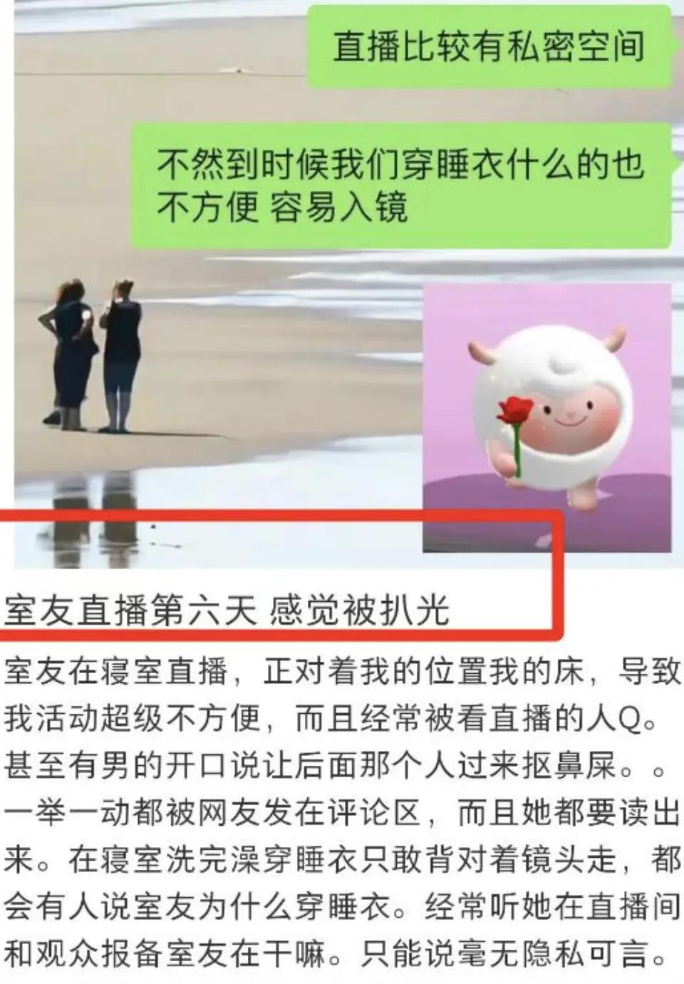 这类帖子一经发出,往往会引发大量共鸣,评论区纷纷抱怨 " 室友凌晨一点还在直播打游戏连麦 "" 没经过我同意就把我拍进镜头里 "" 提醒她反而被骂多管闲事 "……