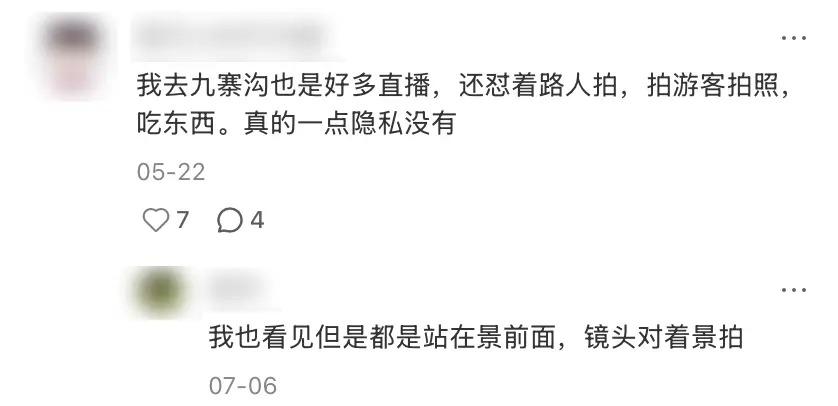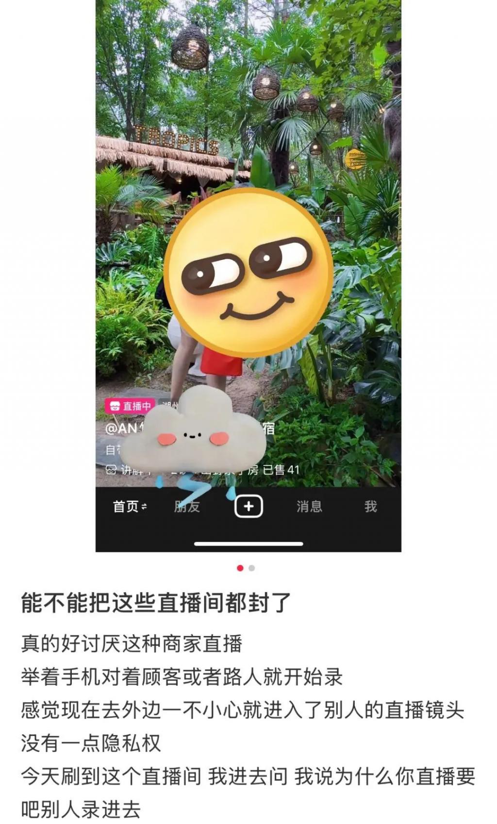 此外,还有一些主播会将游客当成景点,直接将手机镜头怼在人们面前,嘴里嘟囔着:" 给大哥找美女。" 游客吃饭、休息、拍照时也总会被他们打扰,要么被采访、要么被当作节目效果整蛊,可谓是片刻不得安宁。