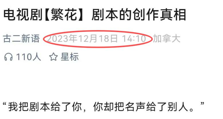声明里提到的 " 程某某 ",就是这次舆论的爆料人 " 古二 ",自称是繁花最初的编剧。