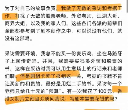 他还说,自己又写剧本又当助理,但一分钱稿酬都没有拿到,只有每月几千的工资。