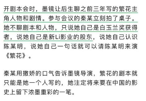 包括他提到,秦雯想要独占繁花剧本的署名权,那也是要得到王家卫默认的啊。