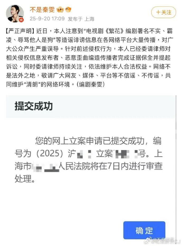 被点名道姓的秦雯也很直白了:" 全是造谣诽谤,已经立案起诉。"