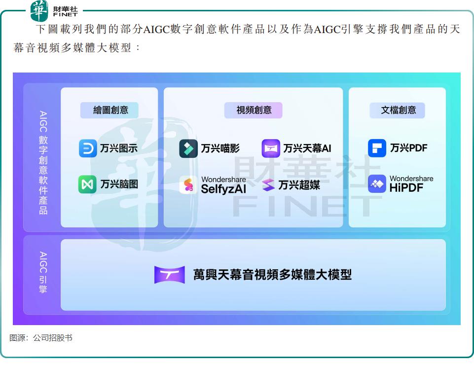 万兴科技是一家面向全球的 AIGC 数字创意软件提供商,主打视频创意产品,帮助用户以数字化形式实现创意表达。
