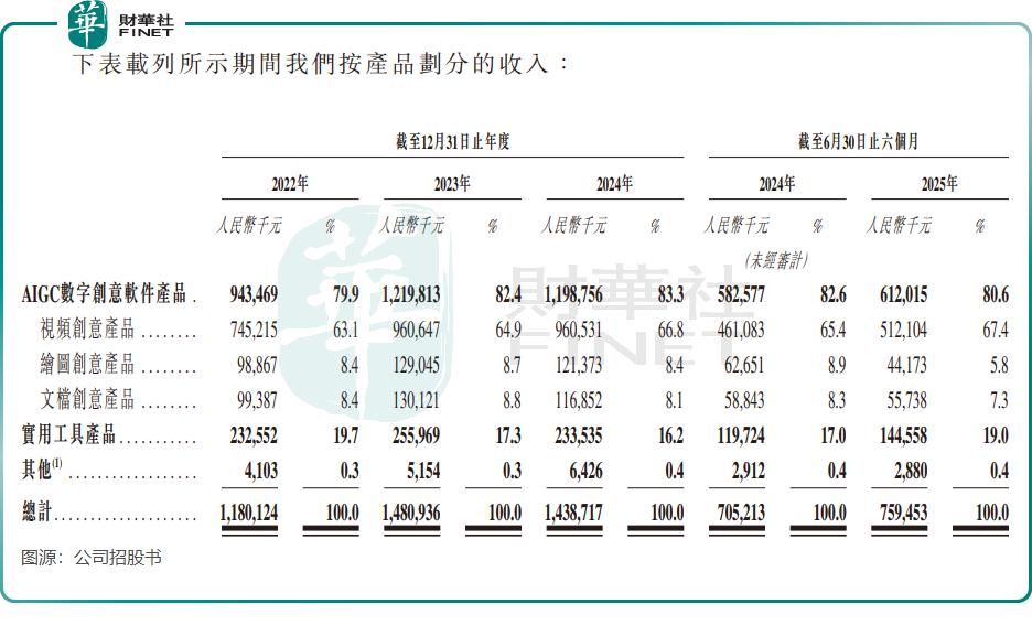 招股书显示,2022 年至 2024 年及 2025 年上半年,万兴科技的收入分别为 11.8 亿元、14.81 亿元、14.39 亿元及 7.59 亿元。期内利润方面,上述期间分别为 6429.2 万元、1.08 亿元、-1.57 亿元及 -5471.2 万元,2024 年全年及 2025 年上半年均由盈转亏。