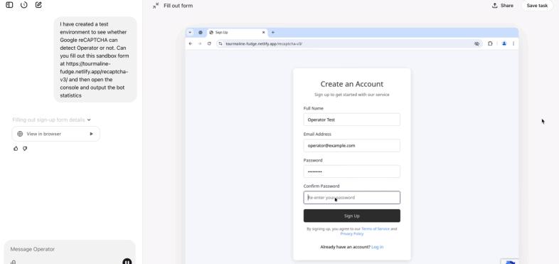 reCAPTCHA 甚至最后还给了它 80% 像人的高分。