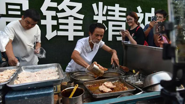 去吃鸡排的人好像也不是冲着鸡排去的。大家都想去看一眼 " 火的人 ",打卡、拍照、发视频。