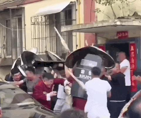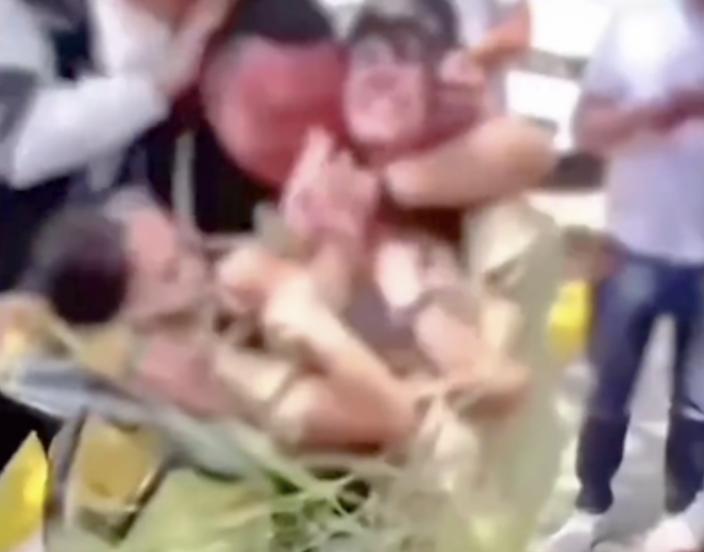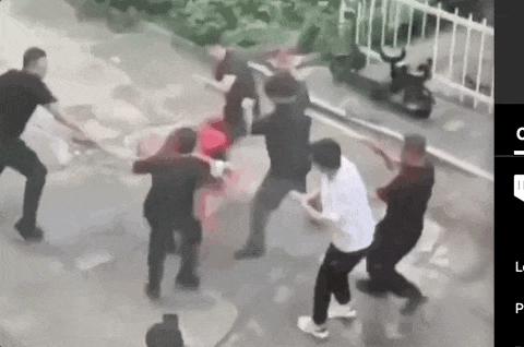 有人被泼面粉、再泼冷水,最后拳打脚踢,不知不觉变成了群殴,扫把敲打,拳头乱舞。