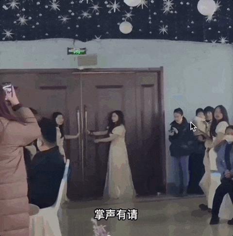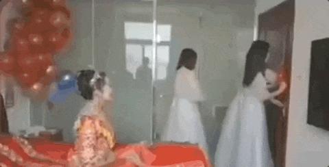 接亲环节,伴娘们通常是守门的角色,有人一脚踢开房门,门撞击在伴娘头上,把人掀翻在地。