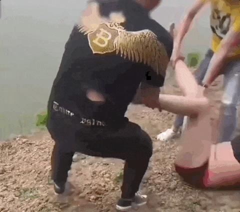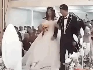 还有人故意扑倒新娘子,来跟新郎"开玩笑"。