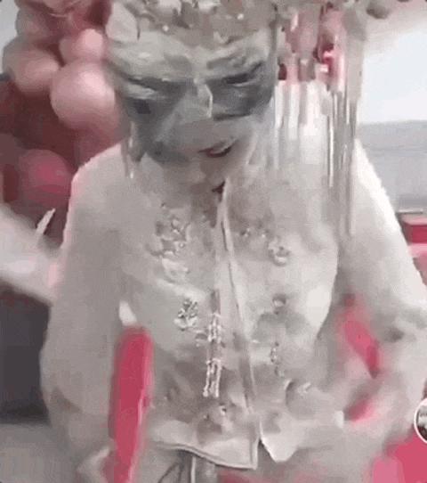 前一秒还是精致新娘,后一秒就被面粉糊脸;