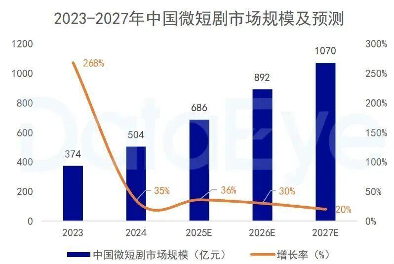 公开数据显示,2024 年国内短剧市场规模已达 504 亿,预计 2027 年突破千亿,并在去年已经首次超过电影票房规模。