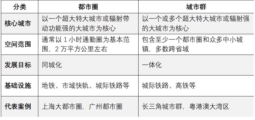 而都市圈一般只有一个中心城市,以 "1 小时通勤圈 " 为范围,以 " 同城化 " 为目标。