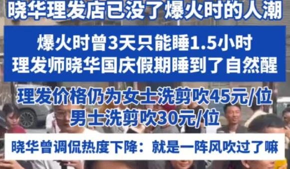 去年年底,湖南怀化的理发师晓华,因为价格便宜、十几年不涨价、听得懂人话,被广为追捧过,有人做高铁专程去剪头发。