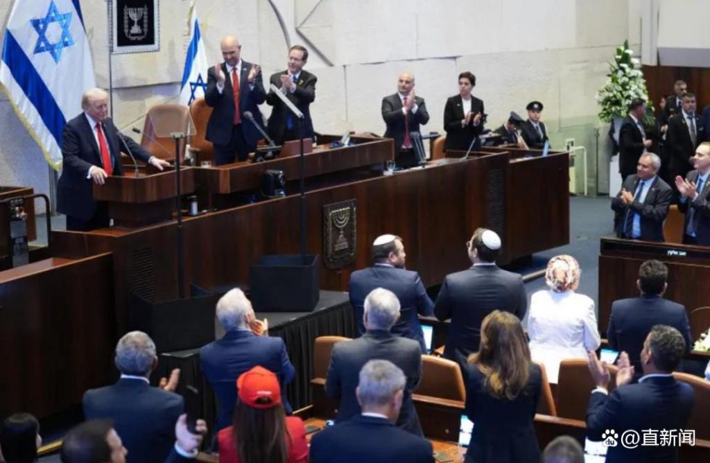 13 日,美国总统特朗普在以色列议会发表演讲。