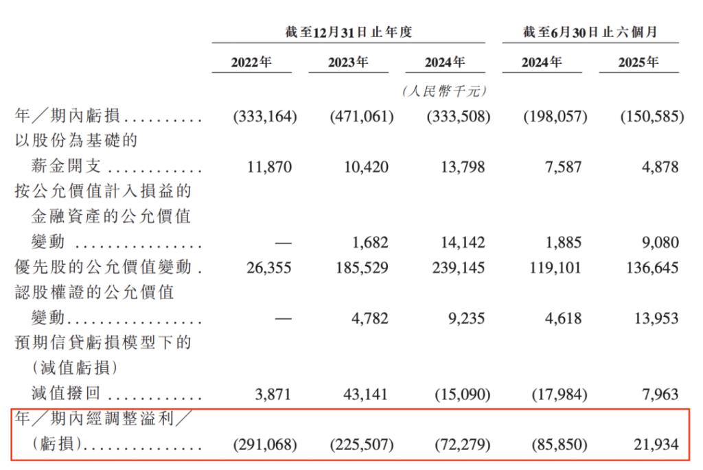 同期,经调整净利润分别为 -2.91 亿元、-2.26 亿元、-7227.9 万元、2193.4 万元。2025 年上半年,公司的经调整净利润同比扭亏为盈。