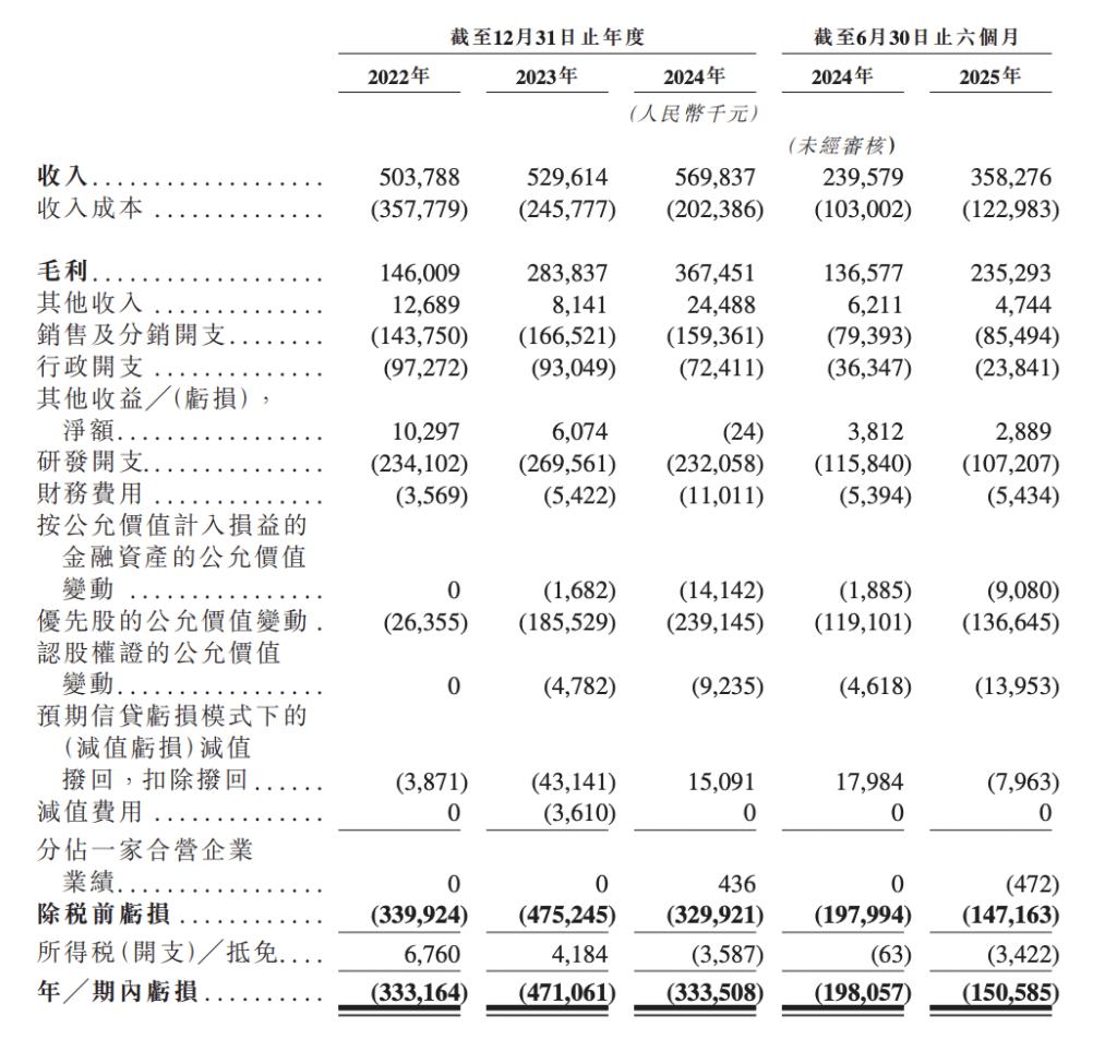 不过该公司尚未实现盈利,且呈现持续亏损状态。报告期内,年 / 期内亏损分别约为 3.33 亿元、4.71 亿元、3.34 亿元及 1.51 亿元,3 年半累计亏损达到 12.88 亿元。