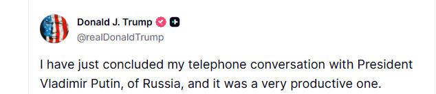 在 16 日稍晚时,美国总统特朗普在其个人社交媒体平台上发布了同俄罗斯总统普京当天通话的内容,并积极表态称,此次通话非常富有成效。在特朗普相关声明发出后不久,俄罗斯总统特使德米特里耶夫也发声表示,两国总统的通话 " 积极且富有成效 ",双方明确了下一步的行动方案。