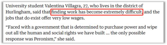 (阿根廷大学生吐槽就业难、工资低)