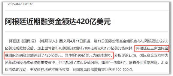 本来阿根廷的外汇储备大概就只有 390 亿美元,这么一来,储备就更少了。